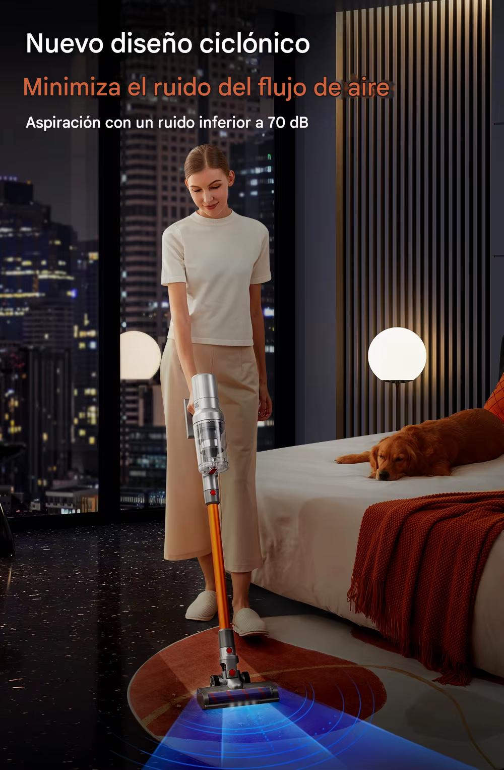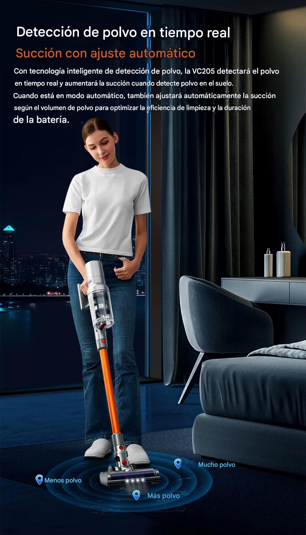2.Chip procesador incorporado, adapta inteligentemente la velocidad del motor según la intensidad del polvo, eficiencia energética óptima y prolonga el tiempo de servicio.