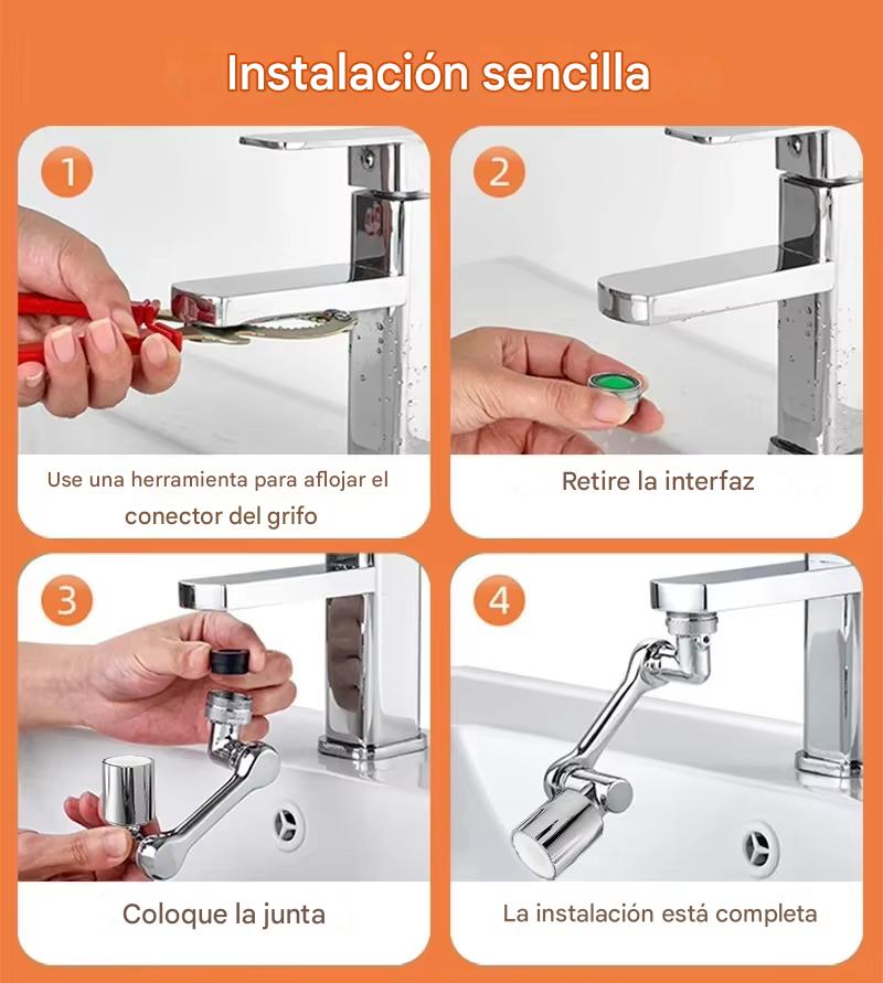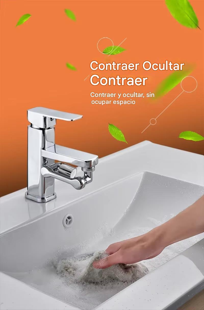 Diseño ergonómico con rotación de 1080°, más cómodo de usar y elimina la molestia de usar grifos de lavabo tradicionales. Disfruta de una experiencia de lavado completa.