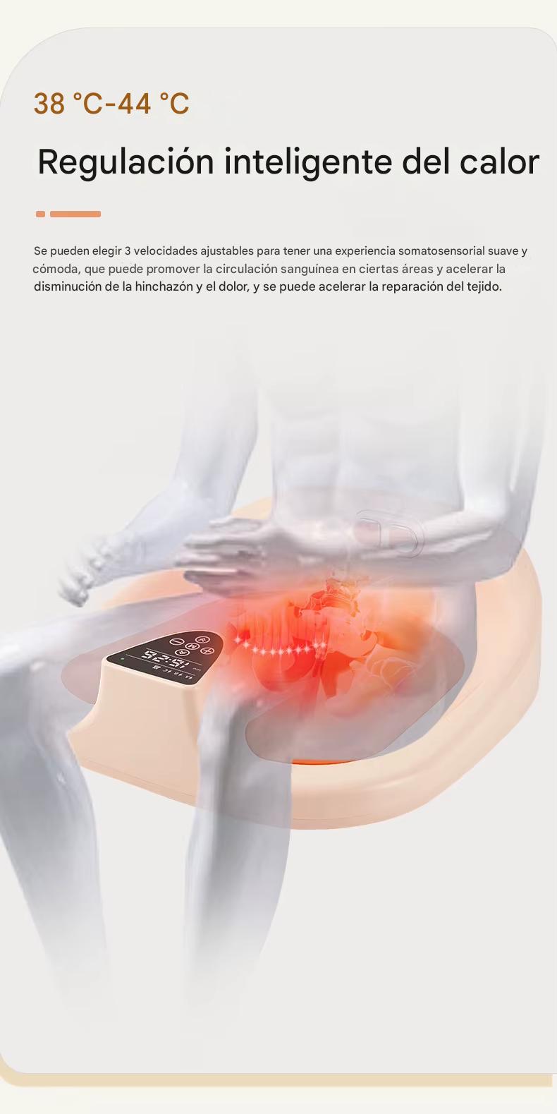 Funciona con una temperatura 38° C-44° C calefacción inteligente: Tres niveles ajustables, cálido y confortable, temperatura no táctil, que promueven la circulación sanguínea local, aceleran la eliminación de la hinchazón y el dolor y aceleran la reparación de los tejidos.