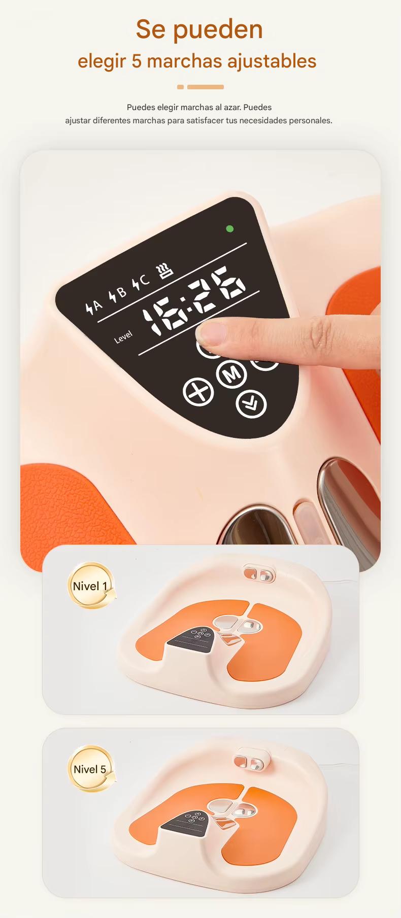 2.Modos de ajuste: modo EMS, modo calefacción y ajuste telescópico.